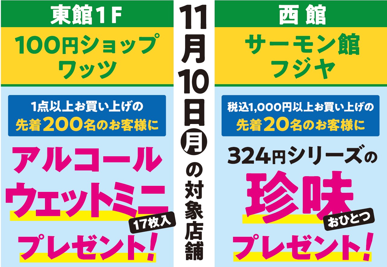 【西館 サーモン館フジヤ】 税込1,000円以上お買い上げの先着20名のお客様に、 324円シリーズの珍味おひとつをプレゼント!