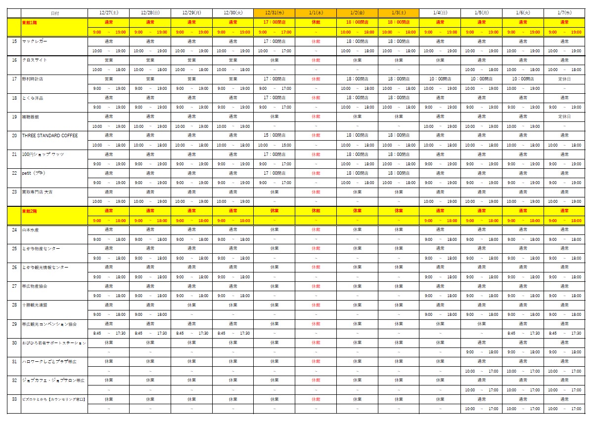 ■西館 アウトレット十勝 ※営業日 月曜〜金曜